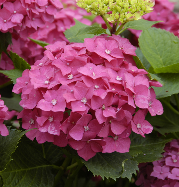 Hydrangea macrophylla 'Hochzeits-Hortensie'® ist ein Flachwurzler und bildet, je nach Boden, fein verzweigte Wurzeln.