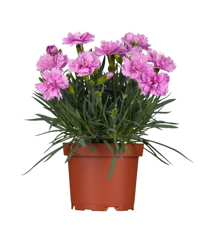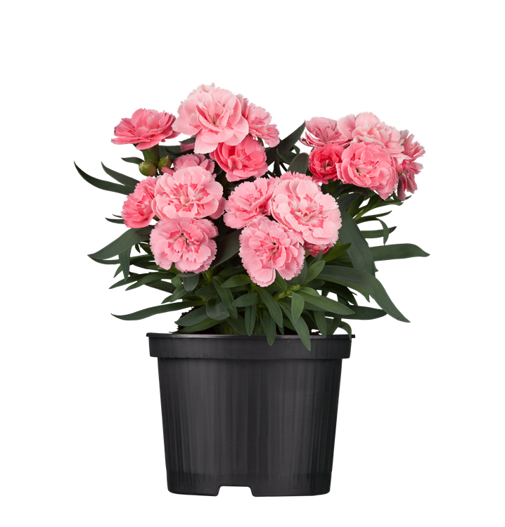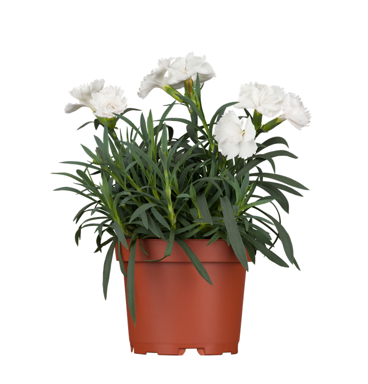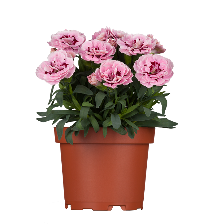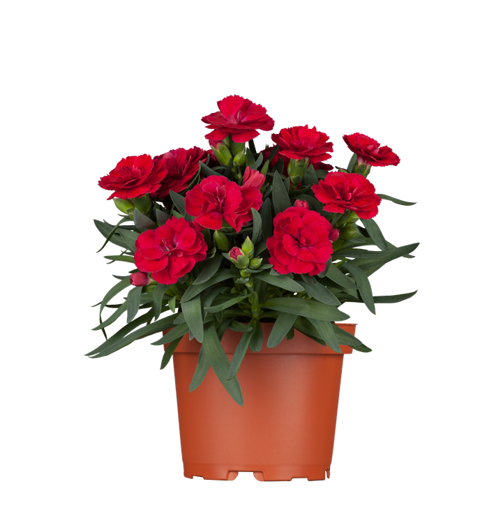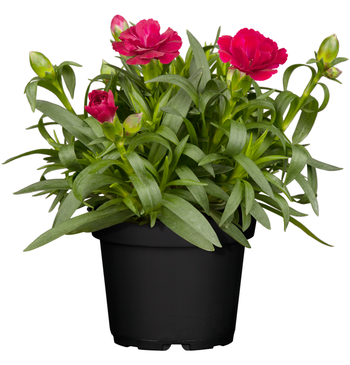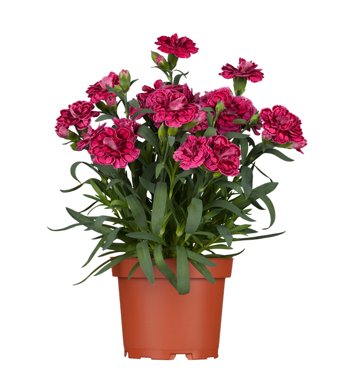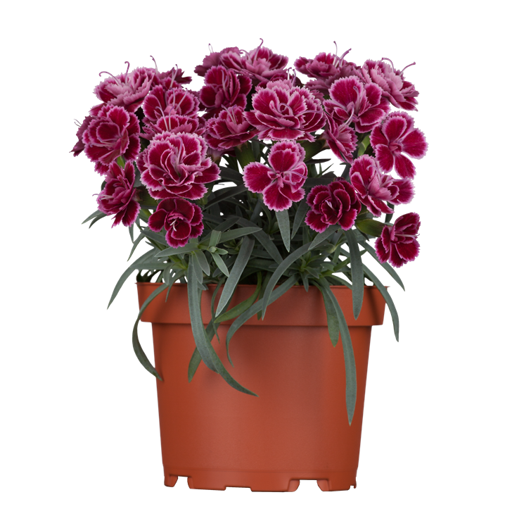Dianthus caryophyllus bildet radförmige, weiße, rosafarbene, rote, dunkelrote Blüten ab Mai. Diese verströmen einen angenehmen Duft.