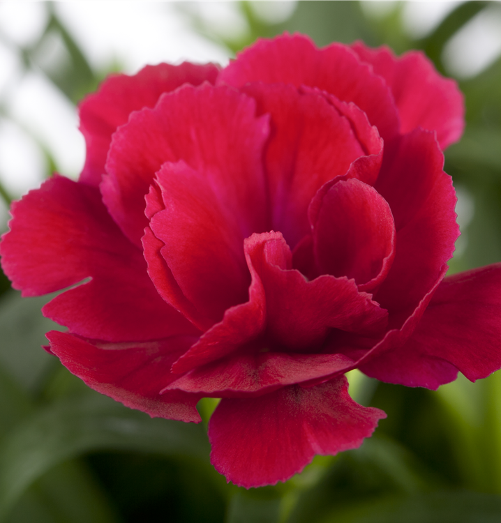 Die Gartennelke (Dianthus caryophyllus) ist eine aufrechte, wintergrüne Staude, die von Mai bis August weiße, rosafarbene, rote oder dunkelrote, radförmige Blüten mit einem angenehmen Duft bildet. Ihre lanzettlichen Blätter sind dunkelgrün. An einem sonnigen Standort mit durchlässigem, humosem, nährstoffreichem Boden erreicht sie gewöhnlich eine Höhe von ca. 50 cm und wird ca. 30 cm breit.