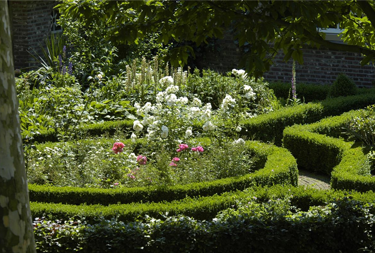 Durch die Beeteinfassungen wird verhindert, dass sich die Bepflanzung auf die Wege ausbreitet. Häufig wird Buchsbaum als Begrenzung genutzt, da er sich gut in Form schneiden lässt. Da Buchsbaum seit einigen Jahren jedoch auch anfällig für Krankheiten sein kann, wird als Alternative häufig die Heckenkirsche verwendet, die sehr robust und immergrün ist. Wenn die Beeteinfassung optisch besonders ansprechend aussehen soll, können Polsterpflanzen wie zum Beispiel Teppichphlox, Blaukissen oder Steinkraut genutzt werden. Bei großen Beeten macht sich auch Lavendel als Einfassung sehr schön. Wem eine Beeteinfassung aus Pflanzen zu viel Arbeit macht, kann sich für eine Variante aus Holz entscheiden. Dabei werden Bretter, Balken oder Rundhölzer verwendet, die hochkant in den Boden gesteckt werden.