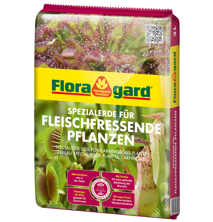 Die Floragard Spezialerde für fleischfressende Pflanzen (Carnivoren) ist eine gebrauchsfertige Erde zum Topfen und Umtopfen von Trompetenpflanzen, Sonnentau, Venusfliegenfallen und anderen anspruchsvollen Carnivoren. Die einzigartige Zusammensetzung aus natürlichen Ausgangsstoffen ohne Beigabe von Düngern bietet beste Voraussetzungen für das gesunde Wachstum der edlen Gewächse. Der saure pH-Wert ist exakt an die Bedürfnisse dieser Moorpflanze angepasst.