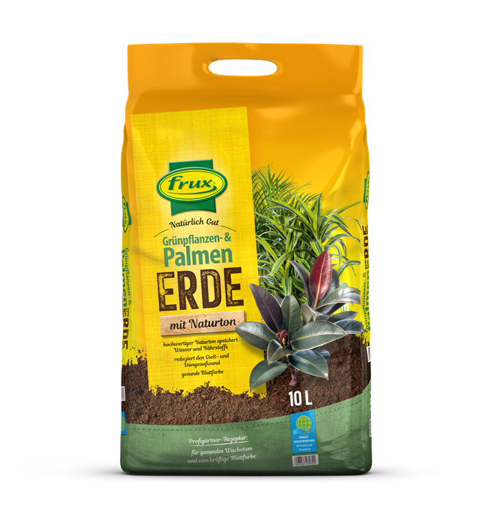 Gebrauchsfertiges Kultursubstrat für alle Grünpflanzen, Palmen und Blattschmuckpflanzen. Durch den hohen Anteil an Naturton-Ton und die ausschließliche Verwendung von hochwertigem Torf mit optimaler Struktur garantiert diese Erde eine sehr gute Wasser- und Nährstoffspeicherung. Die spezielle Zusammensetzung und die Nährstoffe dieser Erde fördern das gesunde Wachstum und eine kräftige Blattfarbe von Palmen und anderen Grünpflanzen. Die Erde bleibt vergießfest und atmungsaktiv. Es werden nur hochwertige Rohstoffe genau wie im professionellen Gartenbau verwendet. frux Erde enthält Vorratsdünger und alle für das Pflanzenwachstum notwendigen Nährstoffe. Eine Nachdüngung der Pflanzen ist daher erst nach ca. 4-6 Wochen notwendig.