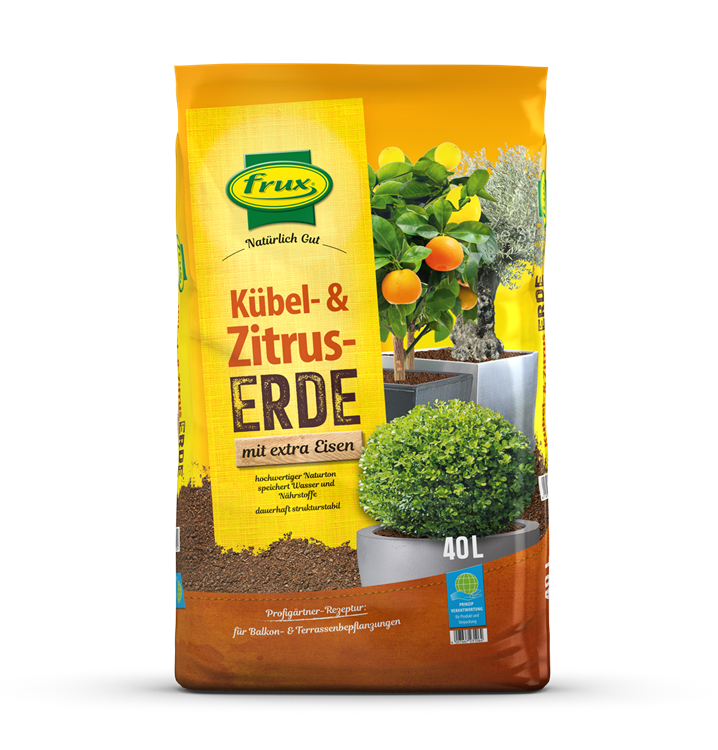 Mit der frux Kübel- & Zitruspflanzenerde steht dem Verbraucher eine hochwertige Einheitserde zur Verfügung, die sich schon jahrzehntelang im internationalen Erwerbsgartenbau bewährt hat. frux Kübel- & Zitruspflanzenerde ist ein gebrauchsfertiges Kultursubstrat zum Ein- und Umtopfen all Ihrer Kübel- und Zitruspflanzen.