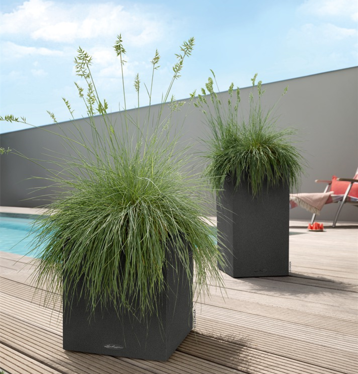 Wer klare Linien schätzt, wird CANTO Stone lieben. Die raue Natursteinoptik in drei Farbtönen bildet einen wunderbaren Kontrast zu sattem Grün und bunten Blüten. Dank gleicher Abmessungen kann der CANTO Pflanzeinsatz zwischen den beiden Modellen Würfel und Säule problemlos getauscht werden. CANTO Stone ist Gewinner des Red Dot Awards 2017, spiegelt Kernelemente zeitgemäßer Architektur wider und setzt Pflanzen attraktiv in Szene.