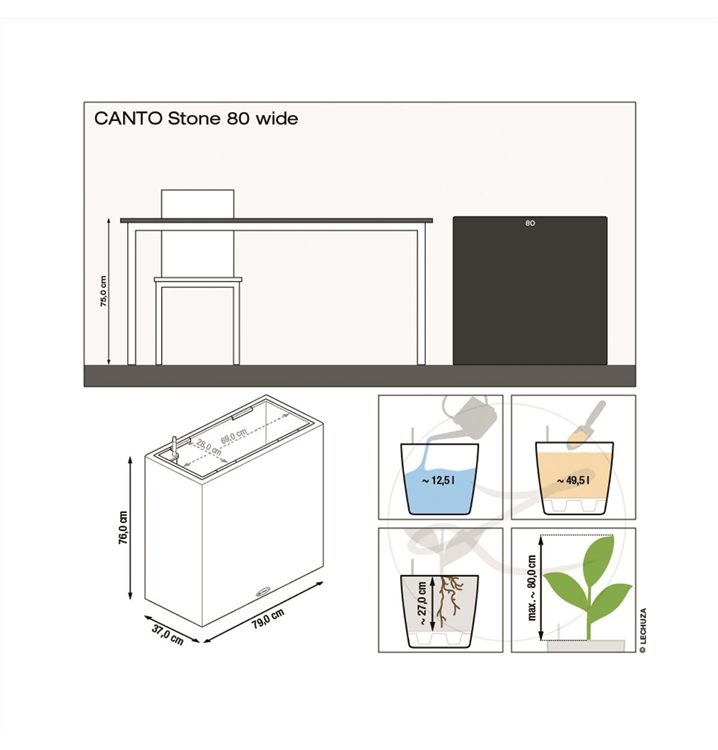 Wer klare Linien schätzt, wird CANTO Stone lieben. Die raue Natursteinoptik in drei Farbtönen bildet einen wunderbaren Kontrast zu sattem Grün und bunten Blüten. Dank gleicher Abmessungen kann der CANTO Pflanzeinsatz zwischen den beiden Modellen Würfel und Säule problemlos getauscht werden. CANTO Stone ist Gewinner des Red Dot Awards 2017, spiegelt Kernelemente zeitgemäßer Architektur wider und setzt Pflanzen attraktiv in Szene.