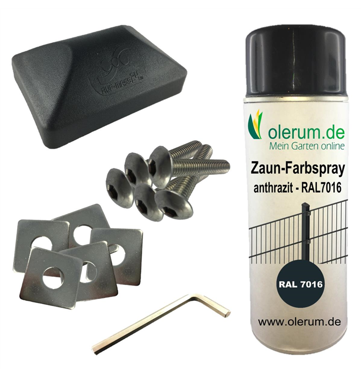 Doppelstabmattenzäune, Tore und Pfosten sind industriell hergestellte Produkte. Leichte Oberflächenbeschädigungen (Oberflächenkratzer, Druckstellen etc.) können auftreten und sind KEIN Reklamationsgrund. Wir senden Ihnen daher bei unseren Zaun- und Toranlagen immer eine Dose Reparaturspray für eventuelle Nachbesserungsarbeiten kostenfrei mit.