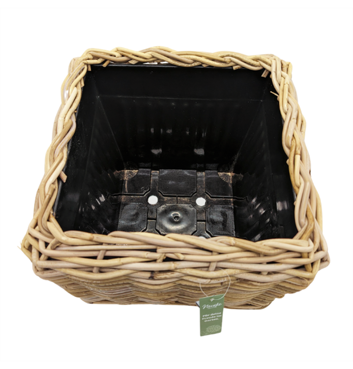 Innentopf: Enthält einen praktischen Kunststoff-Innentopf, der den Rattan-Korb vor Nässe schützt und eine lange Haltbarkeit garantiert