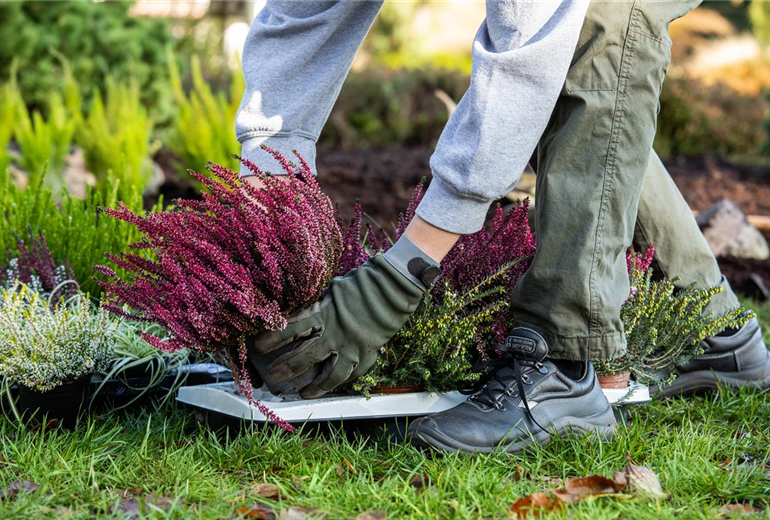 Wenn der Boden am geeigneten Standort gut vorbereitet wurde, kann man mit dem Pflanzen beginnen. Prinzipiell kann Heidekraut ganzjährig gepflanzt werden. Die Bezeichnung von Winterheide und Sommerheide bezieht sich auf die jeweilige Blütezeit der Pflanzen. Alle Arten der Heidepflanzen sind mehrjährig und können den Winter gut überstehen. Wenn man die Wahl hat, sollte man aber den Herbst oder das Frühjahr für die Pflanzung des Heidekrauts nutzen, da diese Zeiten am besten geeignet sind. Vor allem bei der Anlage eines Heidegartens, aber auch schon bei einem größeren Heidebeet sollte man sich vorher einen Plan machen, wo welche Pflanzen stehen sollen. Dabei sollte sowohl an die Optik, aber auch an die Möglichkeiten gedacht werden, um die Heide pflegen zu können.