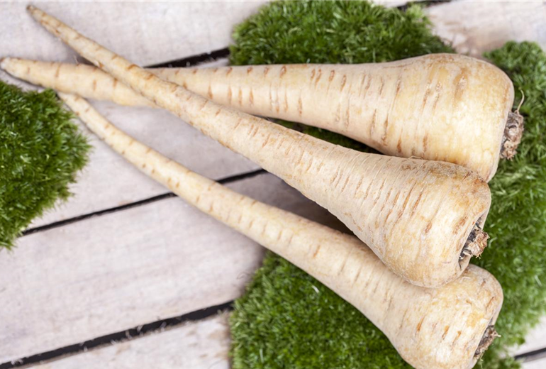 Die meisten Wurzelgemüse werden im Herbst geerntet, doch die Mairübe ( Brassica rapa var. rapifera subvar. majalis ) ist ein typischer Frühsommergenuss. Von Mai bis August wird ausgesät, ab Mai geerntet. Die schneeweißen, runden Rüben sind bei einer Dicke von fünf bis sechs Zentimeter zart und mild im Geschmack. Ein klassisches Herbstgemüse ist die Pastinake ( Pastinaca sativa ). Nachdem sie schon vor Jahrtausenden verzehrt wurde, verdrängten Kartoffeln und Möhren sie im 18. Jahrhundert aus den Gärten und von den Speiseplänen. Jetzt ist sie zurück und bereichert unsere Küche mit ihrem süßlich-herben, erdigen und ein wenig sellerieähnlichen Aroma. Ausgesät wird von April bis Mai ins Freiland, geerntet ab Oktober. Köstlich in Suppen oder als Schmorgemüse. Der Pastinake sehr ähnlich ist die Wurzelpetersilie ( Petroselinum crispum ssp. tuberosum , die Sorten ’Konika’ und ’Halblange’); die Aussaat sollte nicht zu früh erfolgen, idealerweise Ende April/Anfang Mai in den abgetrockneten Boden. Ein echter Schatz aus vergangenen Tagen ist die Rote Rübe ( Beta vulgaris ) ’Ägyptische Plattrunde’, die seit 1868 bis heute im Handel ist und sich bis weit in den Winter hinein lagern lässt. In dieser Liste nicht fehlen dürfen die Teltower Rübchen ( Brassica rapa f. teltowiensis ), die schon Goethe gemundet haben.