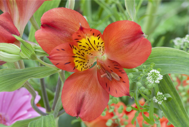 Am Ende der bis zu 150 cm hoch werdenden Blütenstiele zeigen lilienähnliche Blüten in alle Richtungen. Sie schimmern in vielen Schattierungen von Weiß bis Rot. Die Schnittblumen halten in der Vase sehr lange und sind aus gemischten Herbststräußen nicht wegzudenken.