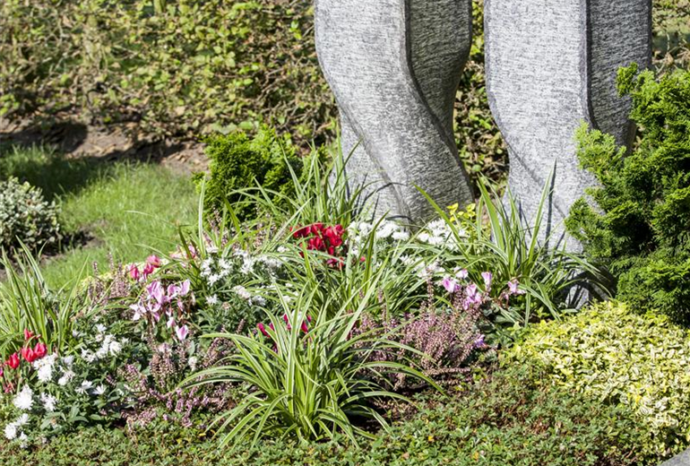 Wer viel unterwegs ist und daher ein Problem damit hat, den Sommer über die Pflanzen auf dem Grab regelmäßig zu gießen, kann sich Gedanken machen, ob dauerhafte Pflanzen auf dieser Grabstelle möglich sind. Viel Immergrünes eignet sich für die Grabbepflanzung, das auch teilweise blüht. Zusätzlich kann dann eine kleine Schale mit Blühpflanzen dazugestellt werden. Diese lässt sich bei längerer Abwesenheit neben die Grabstelle eines Bekannten stellen, der diese mit gießt. Oder man kann sie sogar mit nach Hause nehmen und dort mit dem Garten versorgen lassen, und das Grab sieht dennoch ordentlich aus.