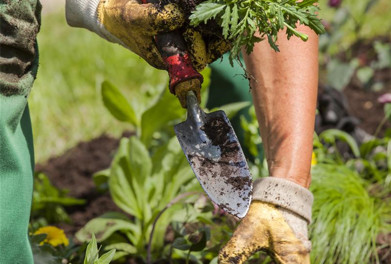 Die meisten Pflanzen bevorzugen ein lockeres Substrat und verkraften keine Staunässe. Vor allem schwere, tonhaltige Böden bedürfen hier einer Optimierung. Das kann mit der Zugabe von offenporigem Granulat erreicht werden. Hierfür bietet sich beispielsweise das Perlite-Gestein an. Bei diesen kleinen weißen Kügelchen handelt es sich um einen Zuschlagstoff, der oft in der Blumenerde vorkommt. Anstelle von Perlite eignet sich auch Lavagranulat zur Bodenlockerung. Manchmal wird dieses im Winter als salzfreies abstumpfendes Mittel zum Streuen angeboten – und ist dann günstig zu haben. Eine besonders wichtige Arbeit, um den Boden zu verbessern, ist die manuelle Auflockerung. Dafür eignet sich ein sichelförmiges Werkzeug wie der Sauzahn.