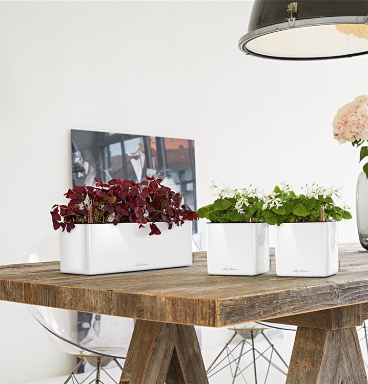 Mit der Glossy-Collection von LECHUZA zieht moderner Glamour in den Wohnbereich ein. Die Pflanzgefäße mit hochwertiger Lackoberfläche sind glänzende Eyecatcher und verleihen Räumen einen eleganten Touch. Dabei sehen die Trendsetter nicht nur edel aus, sondern überzeugen auch durch ihr integriertes Bewässerungssystem, das sich zuverlässig um die Versorgung der Pflanzen kümmert.