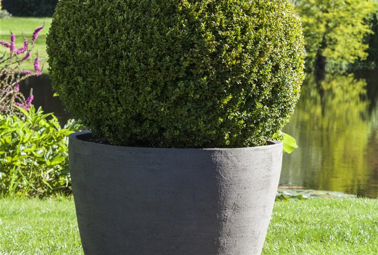 So sind Säulen, Obelisken, Kugeln aber auch Tierformen sehr beliebte Gestaltungselemente in Parks und Gärten, egal ob direkt in die Erde oder in Kübeln gepflanzt.