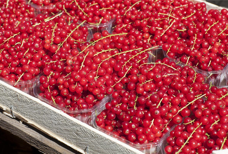 Johannisbeeren ( Ribes ) sind in drei Farben erhältlich – entscheiden Sie nach Ihrem persönlichen Gusto: Weiße (bzw. rosa überhauchte) Johannisbeeren sind eher mild, rote vorwiegend säuerlich und schwarze hauptsächlich herb. Auch hier gilt: Die Mischung macht’s. Klassiker sind die rote ’Jonkher van Tets’ und die etwas süßere ’Rovada’; wer Schwarze Johannisbeeren auch vom Strauch naschen möchte, sollte es mit der selbstfruchtenden ’Kieroyal’ versuchen, deren Geschmack eher an Weintrauben als an Johannisbeeren erinnert. Ein Favorit unter den Weißen Johannisbeeren ist süß-säuerliche ’Weiße Versailler’.