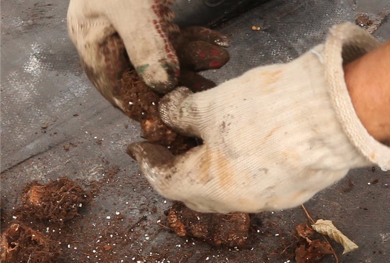 Die Knollen werden noch vor dem ersten Frost vorsichtig aus der Erde genommen. Dabei schneiden Sie die oberirdischen Pflanzenteile handbreit zurück und entfernen dadurch Blätter und Blüten. Überwintert werden nur die Knollen der Begonien. Säubern Sie die Knollen von Erde, um Fäulnis zu vermeiden. Aus dem gleichen Grund ist in der Ruhephase Gießen überflüssig. Befeuchten sollten Sie die Knolle dennoch, weil sie keine schützenden Schuppenblätter haben und dadurch Gefahr laufen, zu vertrocknen. Achten Sie außerdem auf eine regelmäßige Lüftung und eine Raumtemperatur von circa 8 °C. Wird es zu warm, treiben die Knollen zu früh aus. Sie können Begonien sehr gut in einer Sandkiste überwintern. Ab Februar können Sie die Knolle vorziehen und damit die Blütezeit verlängern. Nach den Eisheiligen darf die Begonie wieder ins Freiland.
