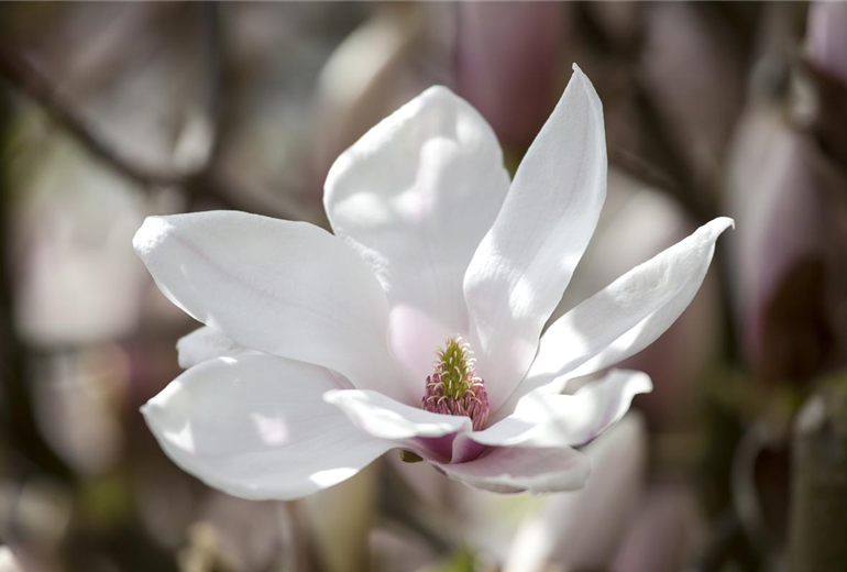 Die Magnolie ist etwas ganz Besonderes. Sie kann sich vom kleinen Strauch bis zum großen Baum entwickeln und hat eine sehr lange Geschichte hinter sich. Die Magnolie gibt es seit mehr als 100 Millionen Jahren. Das macht sie zur ältesten Blühpflanze der Welt. Schon vor der Eiszeit war die Magnolie in Mitteleuropa heimisch. Bemerkenswert ist auch, dass sich aus der Magnolie alle anderen heute bekannten Laubgehölze entwickelt haben. Hierzulande sind Magnolien so beliebt, weil sie schon früh Farbe in den Garten bringen. Mit über 80 Arten ist für jeden Geschmack eine Magnolie dabei. Den Anfang macht die Stern-Magnolie an März mit ihren Blüten. Bis in den Sommer hinein blühen dann die unterschiedlichsten Magnolien.