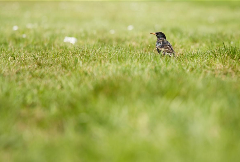 Völlig von der Rolle ist der Rollrasen aber erst, wenn er auch geerntet werden kann. Dieser Zeitpunkt hängt davon ab, ob die Rasenfläche geschlossen und dicht verwachsen ist. Schließlich will man ja mit dem aufgerollten Grün braune Stellen überdecken und nicht erst neue erschaffen. Wie lange der Rollrasen in die Schule gehen muss, hängt ganz von ihm selbst ab. In der Regel wächst ein qualitativ hochwertiger Rollrasen aber 12 bis 14 Monate in der Rasenschule, bevor er in den Garten umziehen darf. Nur dadurch kann gewährleistet werden, dass der Rollrasen frei von Unkraut und Moos ist und während der Zeit in der Rasenschule kräftige Halme in einem saftigen Grün entwickelt hat.