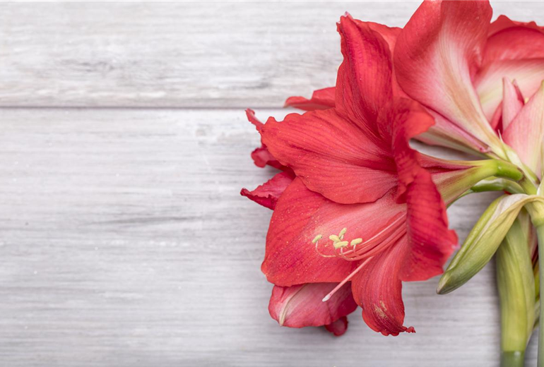 Zu den Pflanzen, die ebenfalls ab Dezember bis Februar blühen, gehören die Amaryllisgewächse. Sie zählen deshalb zu den beliebtesten Pflanzen zu Weihnachten. Doch meist fängt diese Pflanze schon in der Vorweihnachtszeit an, ihre herrlichen, großen Blüten zu zeigen, die in den verschiedensten Rottönen oder auch mal ganz schneeweiß erscheinen und jedes Jahr aufs Neue blühen. Damit sie jedes Jahr wieder neu zu Weihnachten blüht, benötigt sie ab Anfang Herbst eine Ruhephase, in der sie nur noch wenig gegossen und nicht mehr gedüngt werden sollte. Danach werden die verwelkten Pflanzenteile abgeschnitten, die Zwiebel in Papier verpackt und im kühlen, dunklen Keller verstaut. Sollen diese Pflanzen zu Weihnachten wieder blühen, müssen sie dann bis spätestens Mitte November wieder eingepflanzt werden.