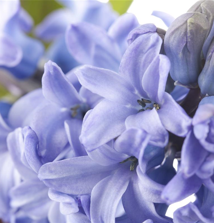 Die Garten-Hyazinthe (Hyacinthus orientalis) blüht über Monate hinweg. Je nach Sorte, erscheinen die dekorativen Blüten in den Farben Weiß, Rosa, Lila und Blau. Bevorzugt wird ein sonniger bis halbschattiger Standort und eine durchlässige Erde.