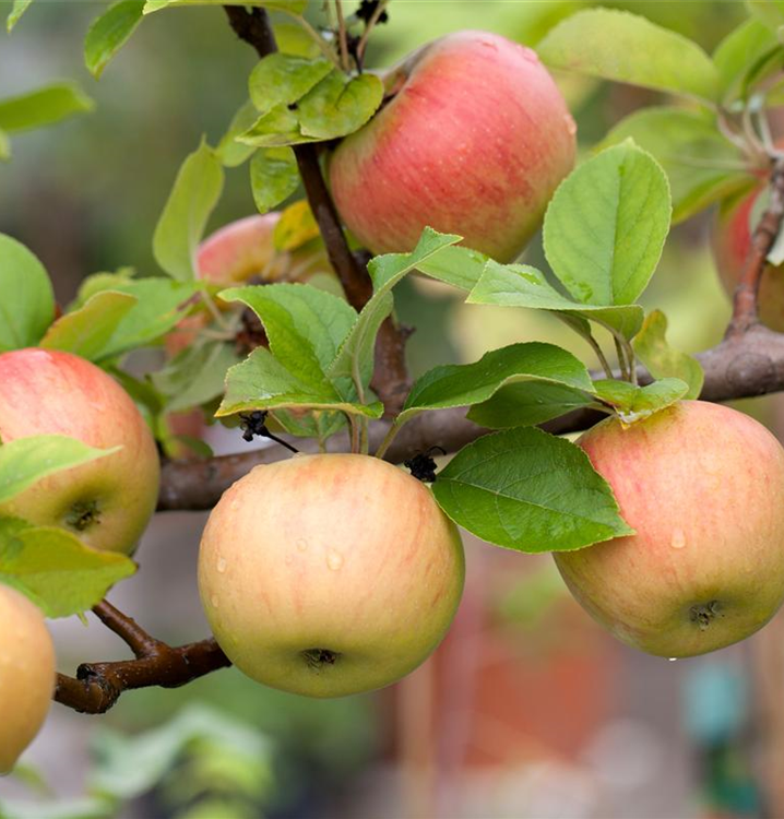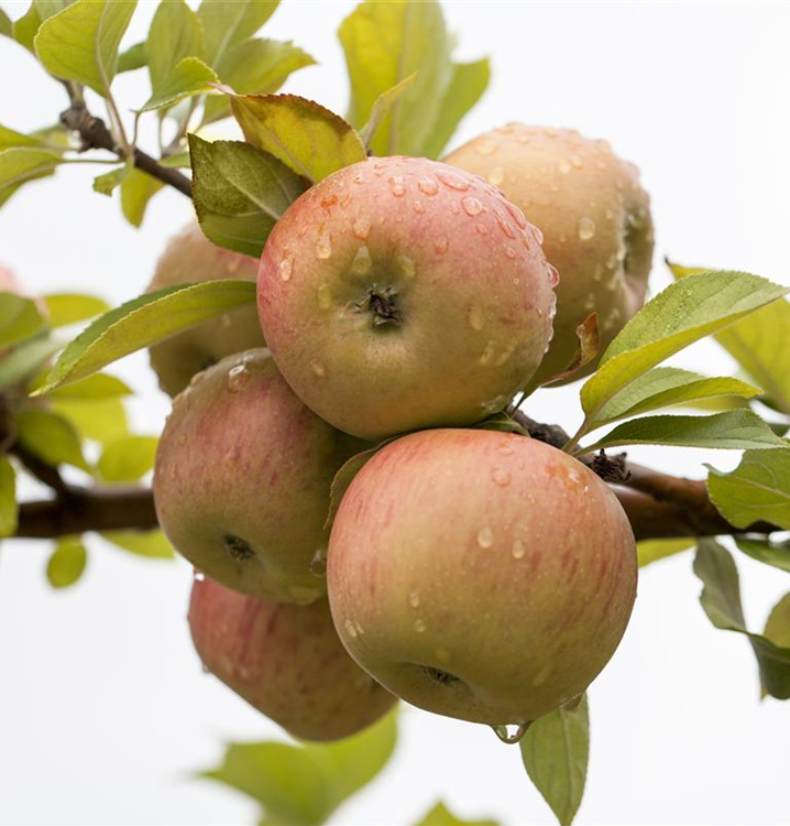 Zu den ältesten Sorten unter den Apfelbäumen zählt die Sorte 'Goldparmäne'. Charakteristisch für diese Früchte sind die rötlichen Streifen der Schale und eine leicht nussige Note im Geschmack. Nach der Ernte sollten die Früchte einige Zeit gelagert werden, um das Geschmacksergebnis zu optimieren. Den höchsten Ertrag erreichen Sie bei richtigem Rückschnitt!