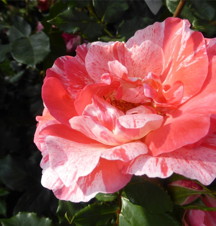 Die Edelrose 'Grimaldi' (Rosa) ist eine reichblühende Rose, die im Garten eine besondere Rolle spielt. Die Blüten sind rosa, weiß und erscheinen zahlreich von Juni bis September. Mit den richtigen Begleitern an ihrer Seite, kommt die Königin der Blumen besonders gut zur Geltung. Niedrige Stauden, Lavendel und Salbei eignen sich ganz gut für diese Zwecke.