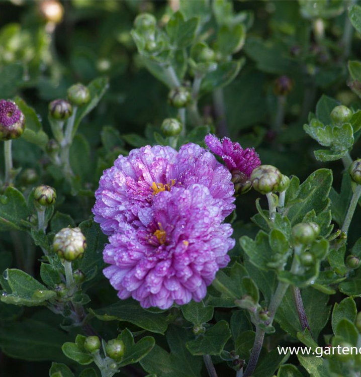 Die Winteraster (Chrysanthemum x grandiflorum) ist eine buschige wintergrüne Staude, die von September bis Oktober dunkelrote, körbchenartige Blüten bildet. An einem sonnigen bis halbschattigen, windgeschützten Standort mit durchlässigem, humosem, sandigem Boden erreicht sie gewöhnlich eine Höhe von ca. 1 m und wird ca. 80 cm breit. Die Winteraster ist gut frostverträglich.
