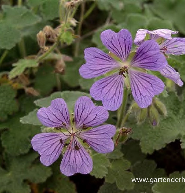 Geranium renardii 'Philippe Vapelle' bildet schalenförmige, violette Blüten ab Juni.
