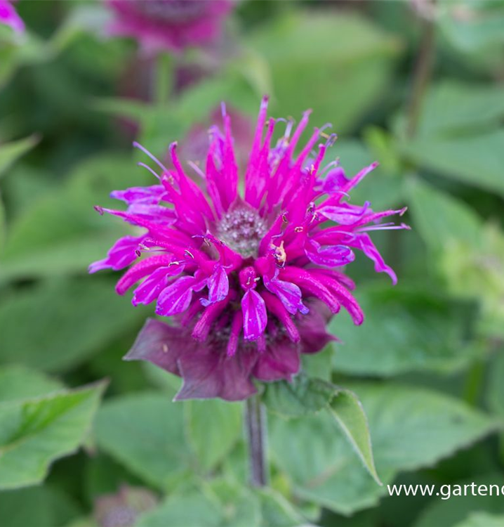 Die Garten-Indianernessel 'Purple Ann' (Monarda fistulosa) ist eine aufrechte, verzweigte Staude, die von Juli bis August purpurrote, lippenförmige, in Quirle angeordnete Blüten bildet. An einem sonnigen Standort mit durchlässigem, nährstoffreichem Boden erreicht sie gewöhnlich eine Höhe von ca. 1,2 m und wird ca. 70 cm breit. Die Garten-Indianernessel 'Purple Ann' ist gut frostverträglich.
