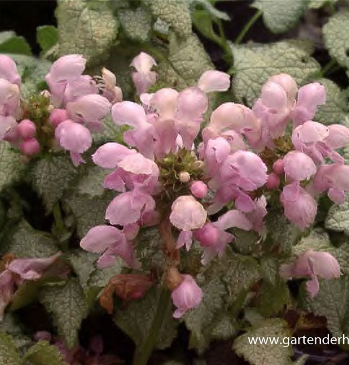 Lamium maculatum 'Pink Pewter' bildet lippenförmige, hellrosafarbene Blüten ab Mai.