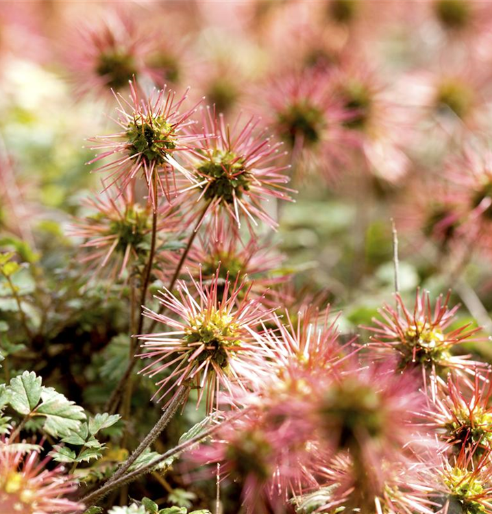 Besonders dekorativ sind die braunen Früchte von Acaena magellanica. Diese erscheinen ab August.