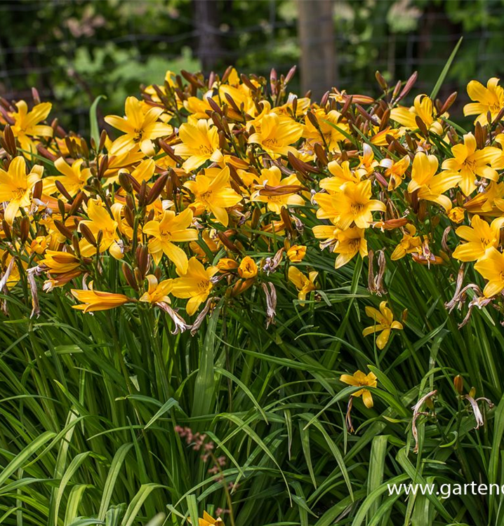 Die Middendorffs Taglilie (Hemerocallis middendorffii) ist eine aufrechte Staude, die von Mai bis Juni gelb-orangene, trichterförmige Blüten mit einem angenehmen Duft bildet. An einem sonnigen bis halbschattigen Standort mit durchlässigem, nährstoffreichem Boden erreicht sie gewöhnlich eine Höhe von ca. 50 cm und wird ca. 30 cm breit. Die Middendorffs Taglilie ist gut frostverträglich.