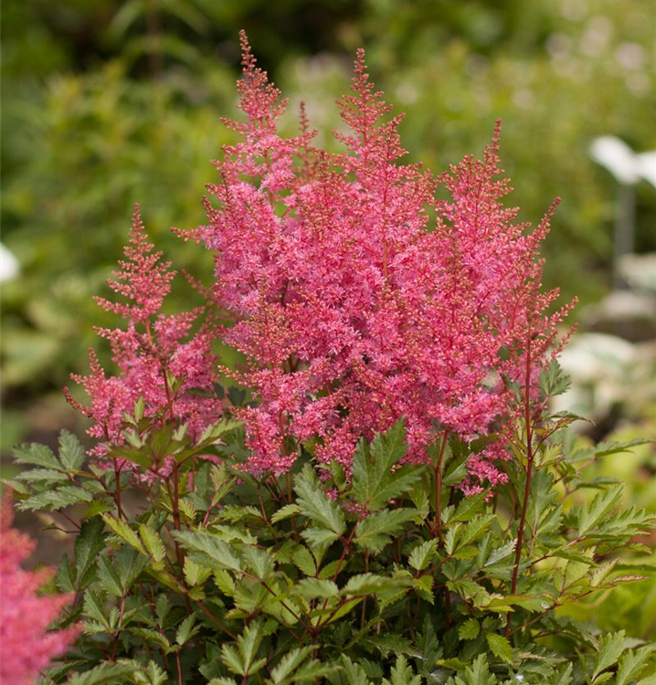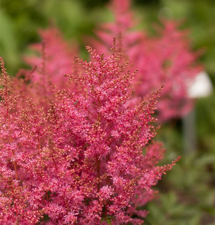 Astilbe japonica 'Younique Pink'® bildet in Rispen angeordnete, pinke Blüten ab Juni.