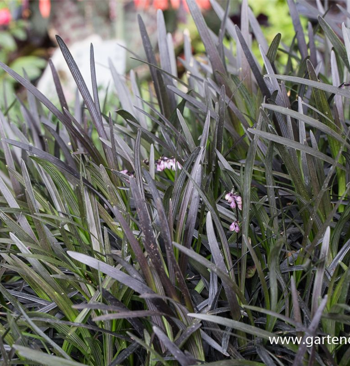 Der Schwarze Schlangenbart 'Niger' (Ophiopogon planiscapus) ist eine buschige, horstbildende Staude, die von Juli bis August rosafarbene, in Trauben angeordnete Blüten bildet. An einem halbschattigen Standort mit durchlässigem, humosem, nährstoffreichem Boden erreicht er gewöhnlich eine Höhe von ca. 20 cm und wird ca. 25 cm breit. Der Schwarze Schlangenbart 'Niger' ist gut frostverträglich.