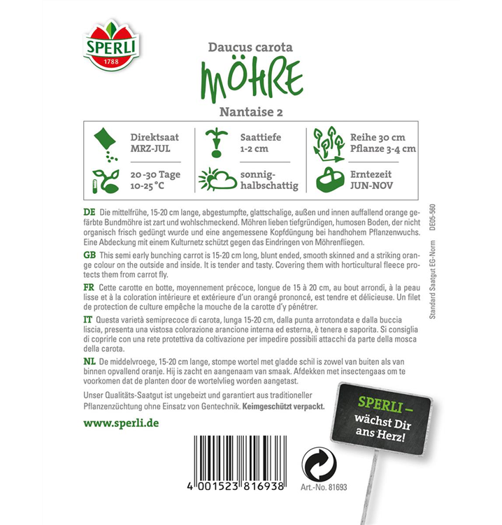 Für das optimale Wachstum der Möhre 'Nantaise 2' werden ein sonniger Standort und durchlässiger, nährstoffreicher Boden benötigt.
