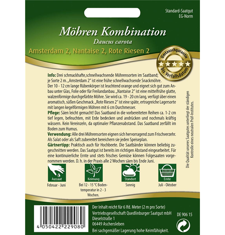 Die Möhren Kombination ist im Gemüsegarten, aber auch zum Frischverzehr, zum Backen, für Säfte, zum Kochen, für Salat oder für Suppen & Eintöpfe sehr beliebt.