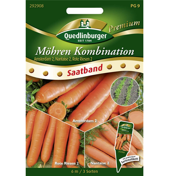 Die Möhren Kombination (Daucus carota var. sativus) bildet Wurzeln, die aromatisch schmecken und bereits ab Juni geerntet werden können. Für das optimale Wachstum der Möhren Kombination werden ein sonniger Standort und durchlässiger, nährstoffreicher Boden benötigt.