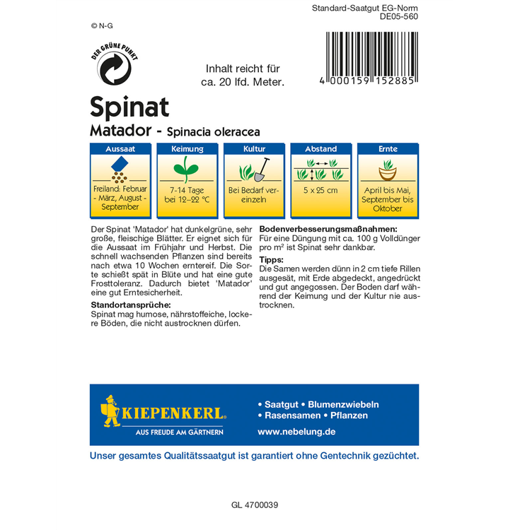 Mehr erfahren Spinatsamen 'Matador'