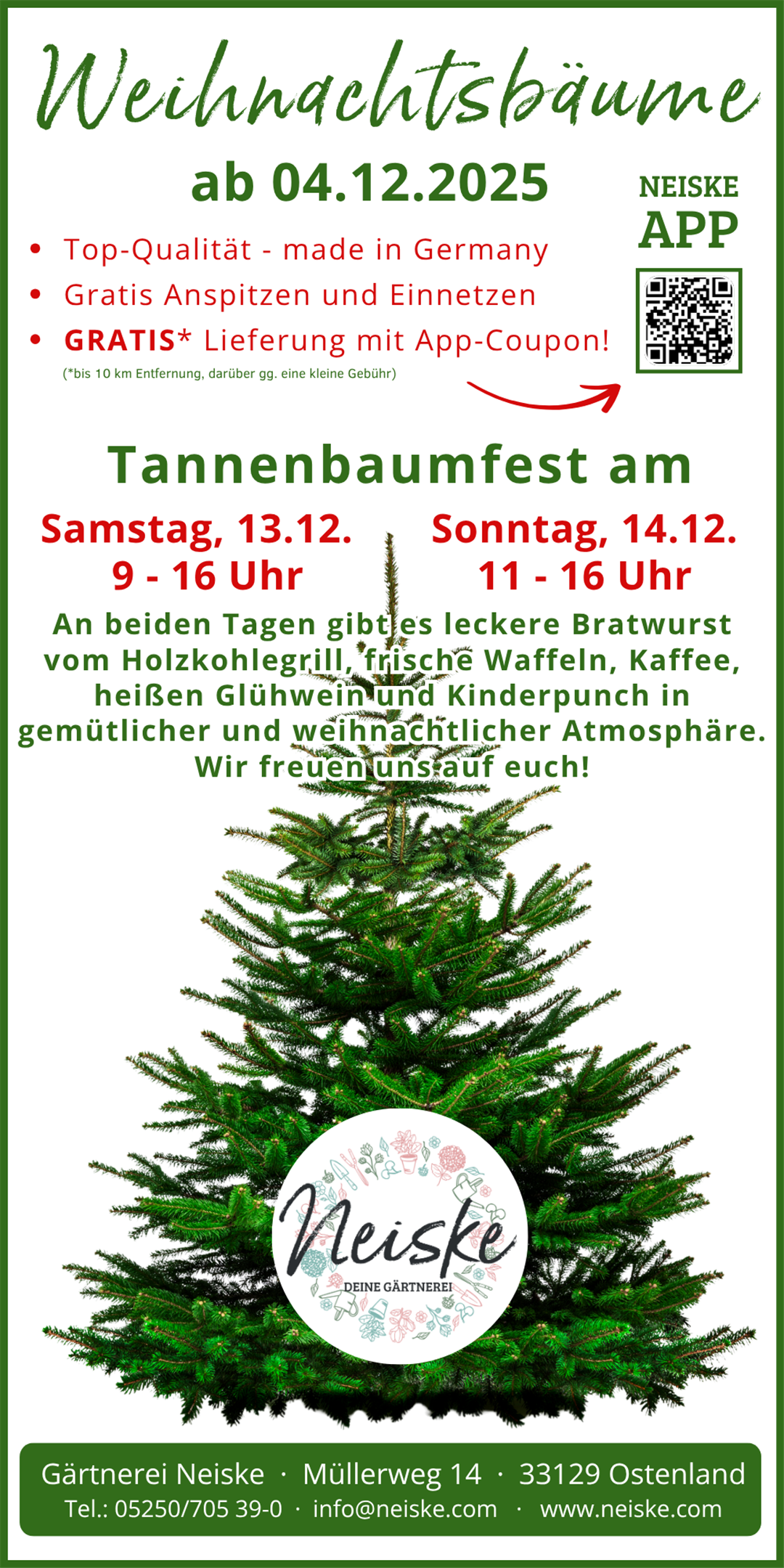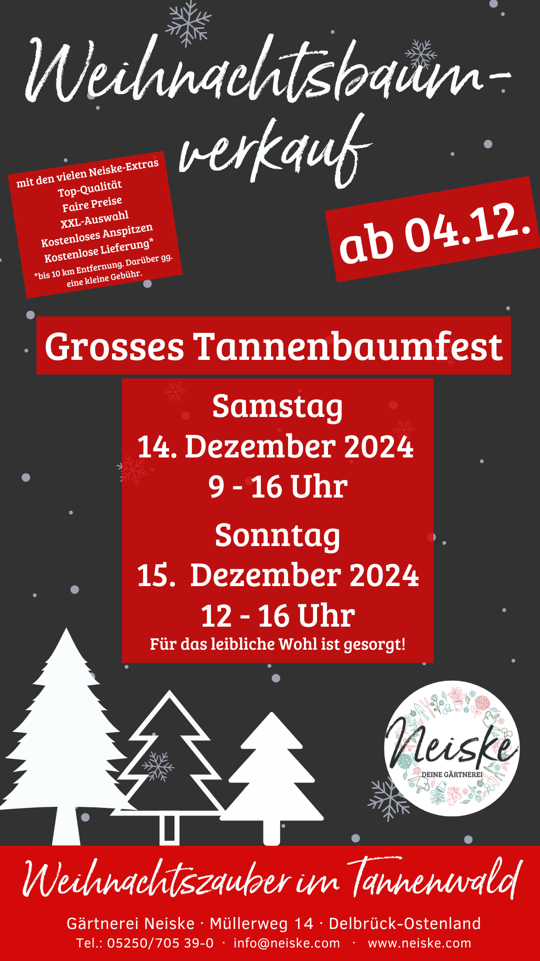 Ab dem 4. Dezember verwandelt sich die Gärtnerei Neiske in ein wahres Weihnachtsparadies! Wir haben für dich: